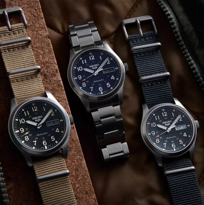 We’ve talked about the Seiko 5 Sports watch collection several times before, but for those new to the design, here’s the low-down. The Seiko 5 Sports watch is inspired by the original Seiko Sportmatic 5 launched in 1963, a design that was both Seiko’s and Japan’s first ever automatic day date watch. The modern-day series keeps the same promises as its historic predecessor with five essential attributes (hence its name) which include an automatic movement, a day and date display, a decent water resistant rating, a recessed crown at 4 o’ clock and a case built especially for durability. Since it’s release, the Seiko 5 Sports collection has made a home for a hefty number of releases including the Brian May Red Limited Edition, the Naruto and Boruto series and the Evisen Skateboard Limited Edition to name just a few. In addition to this, we are now welcomed by the Seiko 5 Sports Field watch.