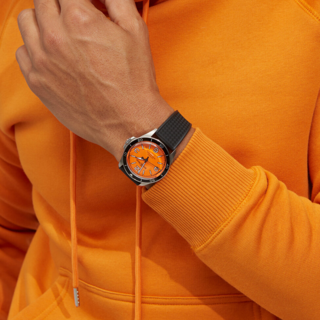 Usually reserved for diver’s watches, the bright orange dial makes its debut within Bell & Ross’ distinctively classic Vintage family. Limited to 500 pieces, the new Bell & Ross BR V2-92 Orange watch introduces a new neon aesthetic to the typically modest collection promising increased legibility, an automatic movement and a round 41mm stainless steel case.