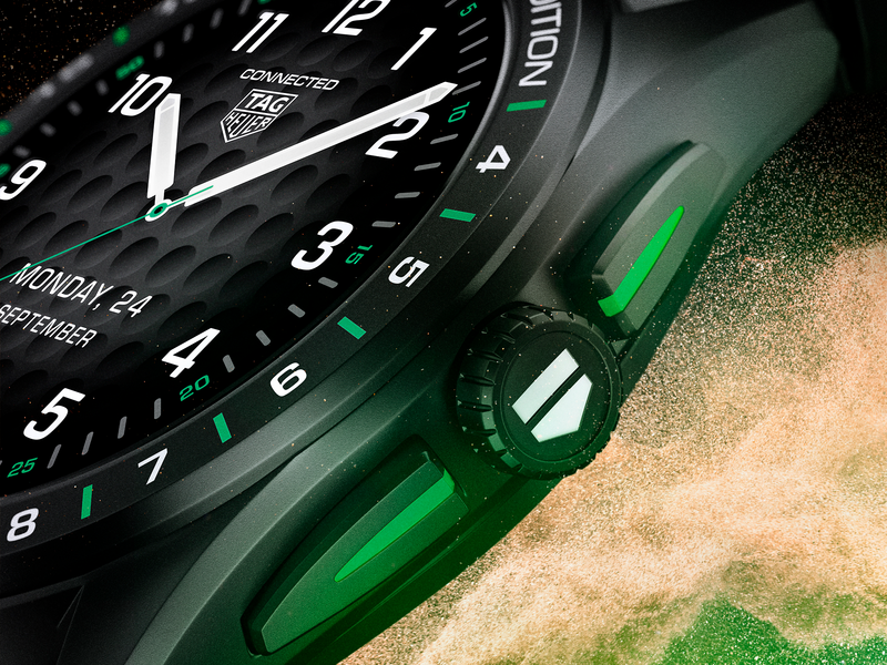 Back in 2015, TAG Heuer gained a reputation as the first watch manufacturer to create the world’s first Swiss made smartwatch. Nicknamed the TAG Heuer Connected, the design set standards across the world for luxury smartwatch design building on the brand’s already long-standing heritage in the sporting world. Three years after its release, TAG Heuer then launched the Connected Golf Edition watch offering access to over 40,000 preloaded golf courses, a club recommendation tool, score tracker and much more. Now, just two months after the release of their next-generation Connected smartwatch, the TAG Heuer Connected Calibre E4, the brand have reinvented the golfing wearable with a re-designed interface, high-resolution mapping and an innovative watch strap equipped with its own ball marker. It’s time to get hands-on with the TAG Heuer Connected Calibre E4 Golf Edition.