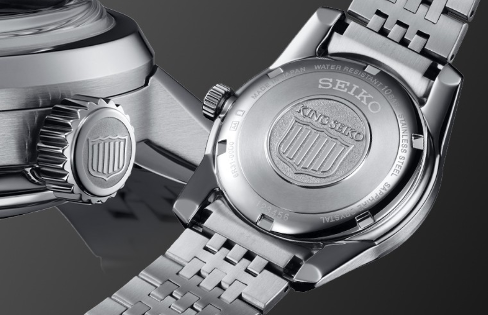 Completing each King Seiko watch is a choice of two straps. The first is a retro-esque fine-link stainless steel bracelet with faceted links, tapering from case to folding buckle. The links are also brushed with polished bevels. Alternatively, you can order the King Seiko watches on a vintage-inspired leather strap in a range of colours. The leather straps close by stainless steel pin buckles engraved with the King Seiko emblem.
