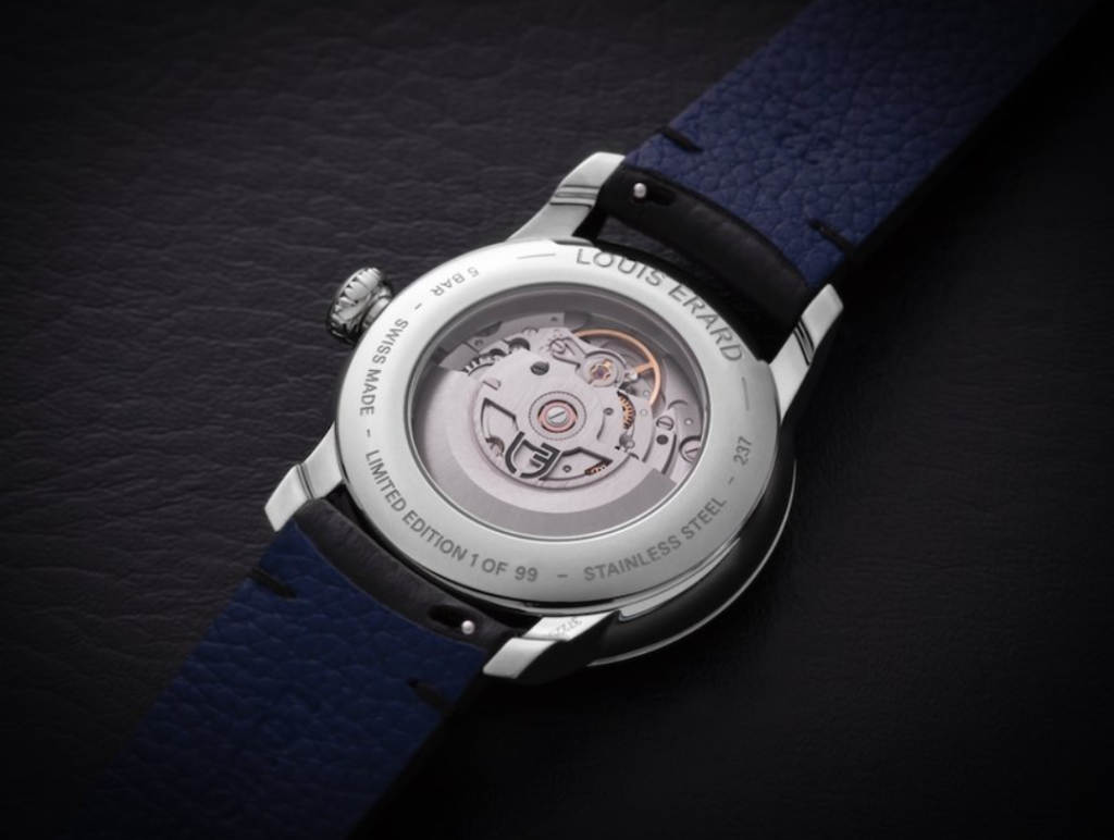 Housed within the Louis Erard Excellence Guilloche Main II Limited Edition and exposed through the sapphire crystal glass exhibition case back is the Sellita SW261-1 élaboré grade automatic winding movement. It comes equipped with an openwork rotor designed with a noticeable black lacquered Louis Erard symbol and a total of 31 jewels. The movement also promises a frequency of 28,800 vibrations per hour and a 38 hour power reserve.