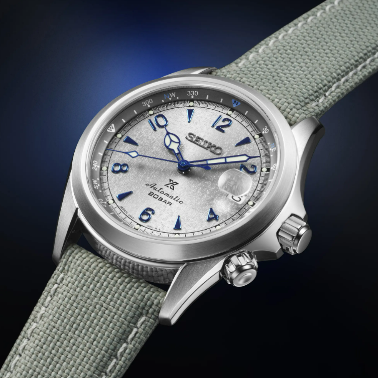 For the third year in a row, Seiko launches a Seiko Prospex Alpinist watch exclusive to the European market. Suitably named the Seiko Prospex Alpinist ‘Rock Face’ SPB355J1 watch, the latest design lives up to its mountaineering heritage with a grey textured dial evoking the same consistency and colour as a real mountain rock face.