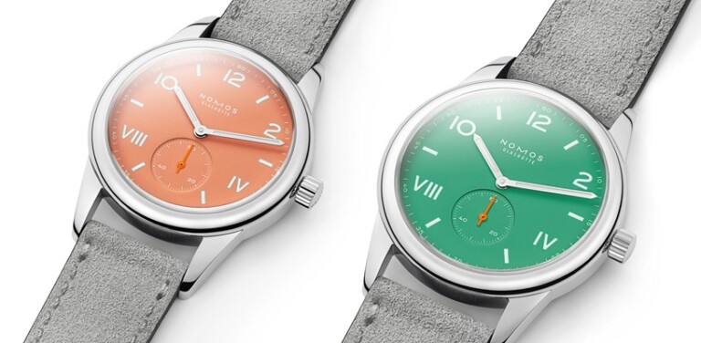 Hands-on with the NOMOS Glashutte Club Campus Cream Coral & Electric Green Watches