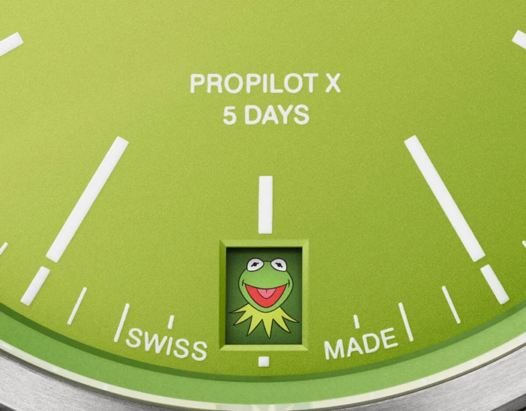 A truly unexpected Oris Watches & Wonders 2023 release is the Oris ProPilot X Kermit Edition watch. For the first time, the Swiss watchmaker partners with Disney’s The Muppets to celebrate a character of absolute joy: Kermit the Frog. The traditional ProPilot X architecture, renowned for its taunt, angular lines and urban-inspired knurled bezel, is joined by a bright green dial designed to mimic the colour of Kermit the Frog’s skin. The date window at 6 o’clock is also uniquely decorated with Kermit’s face, showing only on the first day of the month, a day Oris has labelled “Kermit Day”.