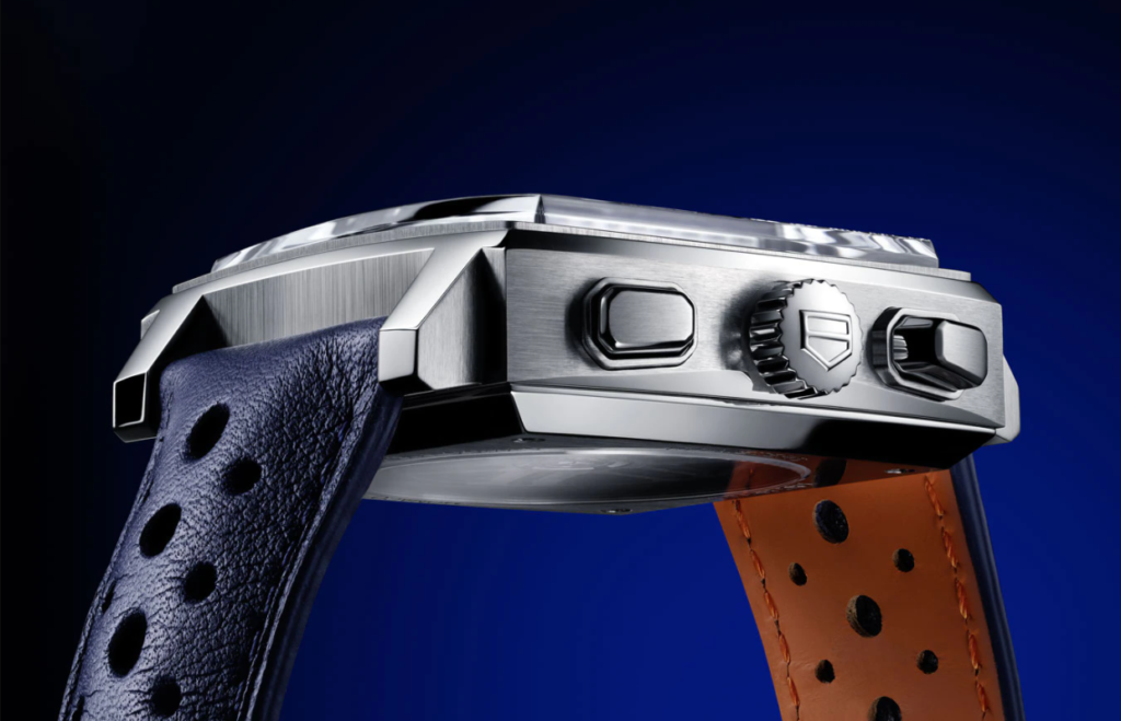 The first TAG Heuer Monaco Gulf Edition was launched in 2007 and since, the special collection has been one of the brand’s most successful and collectible. Now, the series expands again with the 2022 TAG Heuer Monaco Gulf Edition which delivers the same blue and orange livery but with a more refined stainless steel case and the in-house Heuer 02 movement. The case retains the legendary square shape with a sizing of 39mm by 39mm with a nice height of only 15mm. The same angular yet short lugs are present but with newly finely brushed surfaces and polished accents. The sapphire crystal glass is also bevelled and surprisingly, the typically positioned 9 o’clock crown is placed at the conventional 3 o’clock marker. We’re also welcomed to a 100m water resistance and a perforated blue leather strap with orange lining. While the strap looks similar, it features newly sized holes of different sizes to reflect the design of the original 1970 Monaco watches.