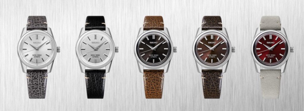 Completing each King Seiko watch is a choice of two straps. The first is a retro-esque fine-link stainless steel bracelet with faceted links, tapering from case to folding buckle. The links are also brushed with polished bevels. Alternatively, you can order the King Seiko watches on a vintage-inspired leather strap in a range of colours. The leather straps close by stainless steel pin buckles engraved with the King Seiko emblem.